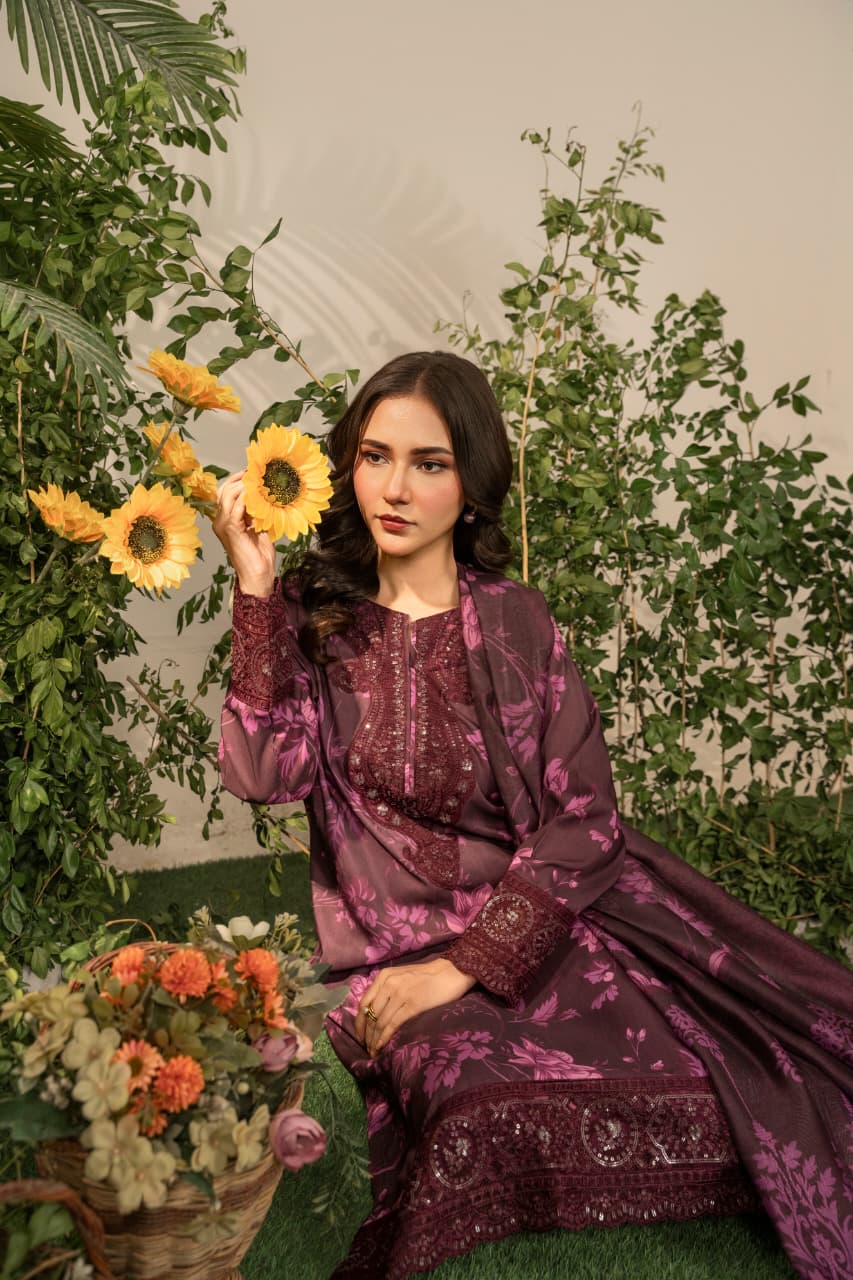 Refresh your winter wardrobe with Amethyst Purple, an exquisitely embroidered shirt crafted from premium Khaddar. Designed to offer comfort during the early winter chill, Amethyst Purple captures the essence of traditional Pakistani artistry blended with modern sophistication. The earthy purple tones and intricate embroidery bring graceful warmth to your look, while the soft, breathable texture ensures ease through changing seasons.