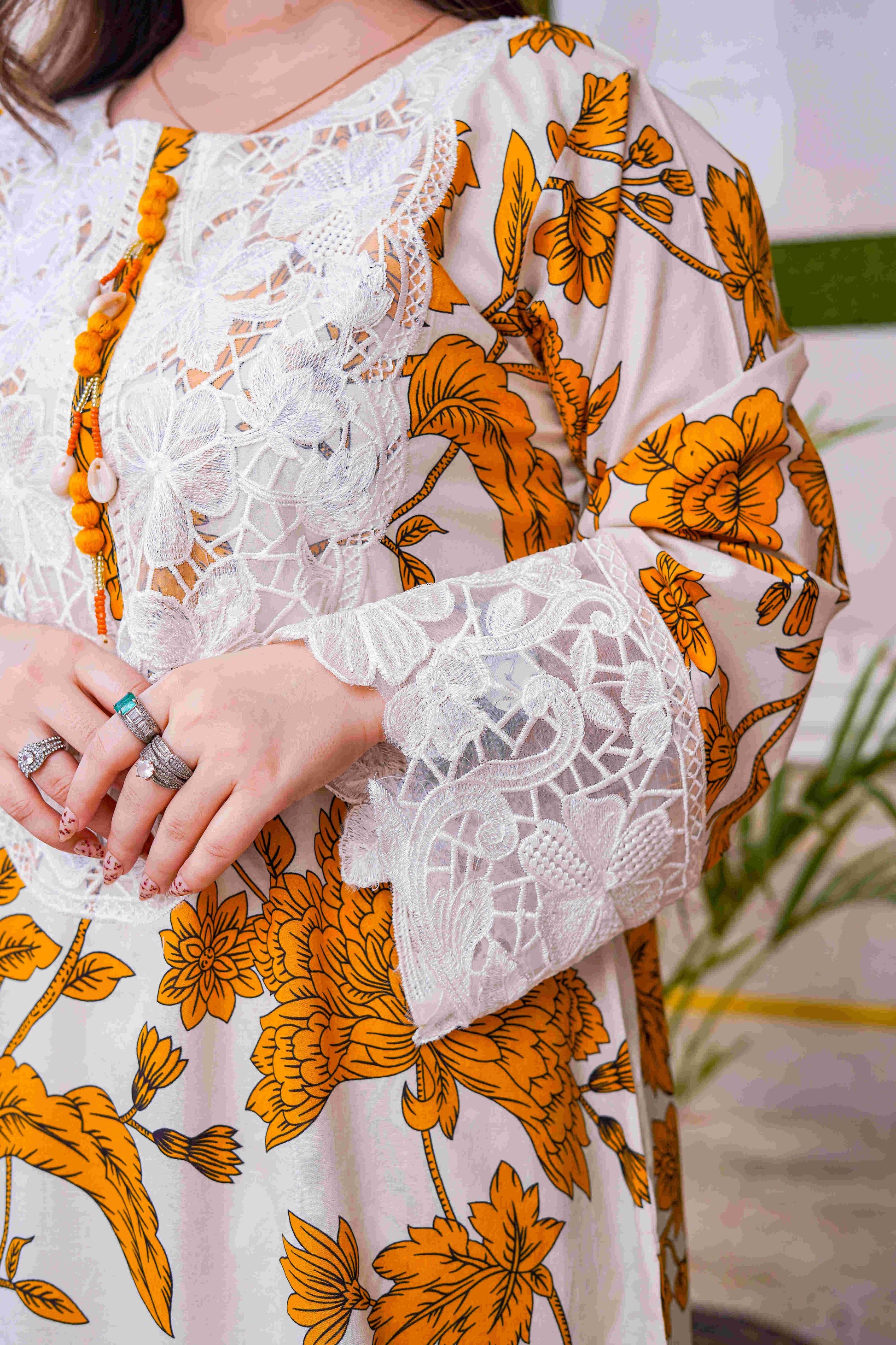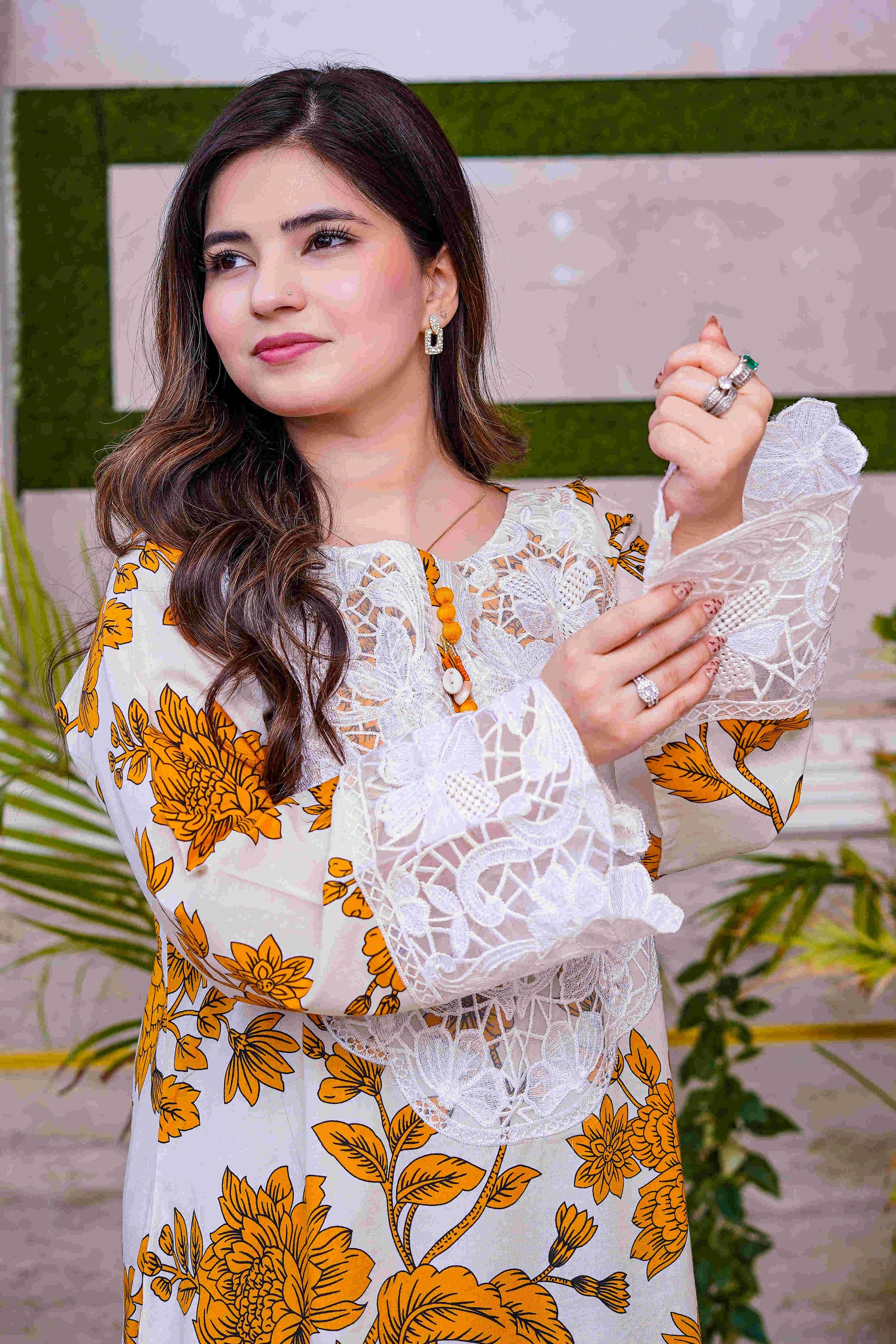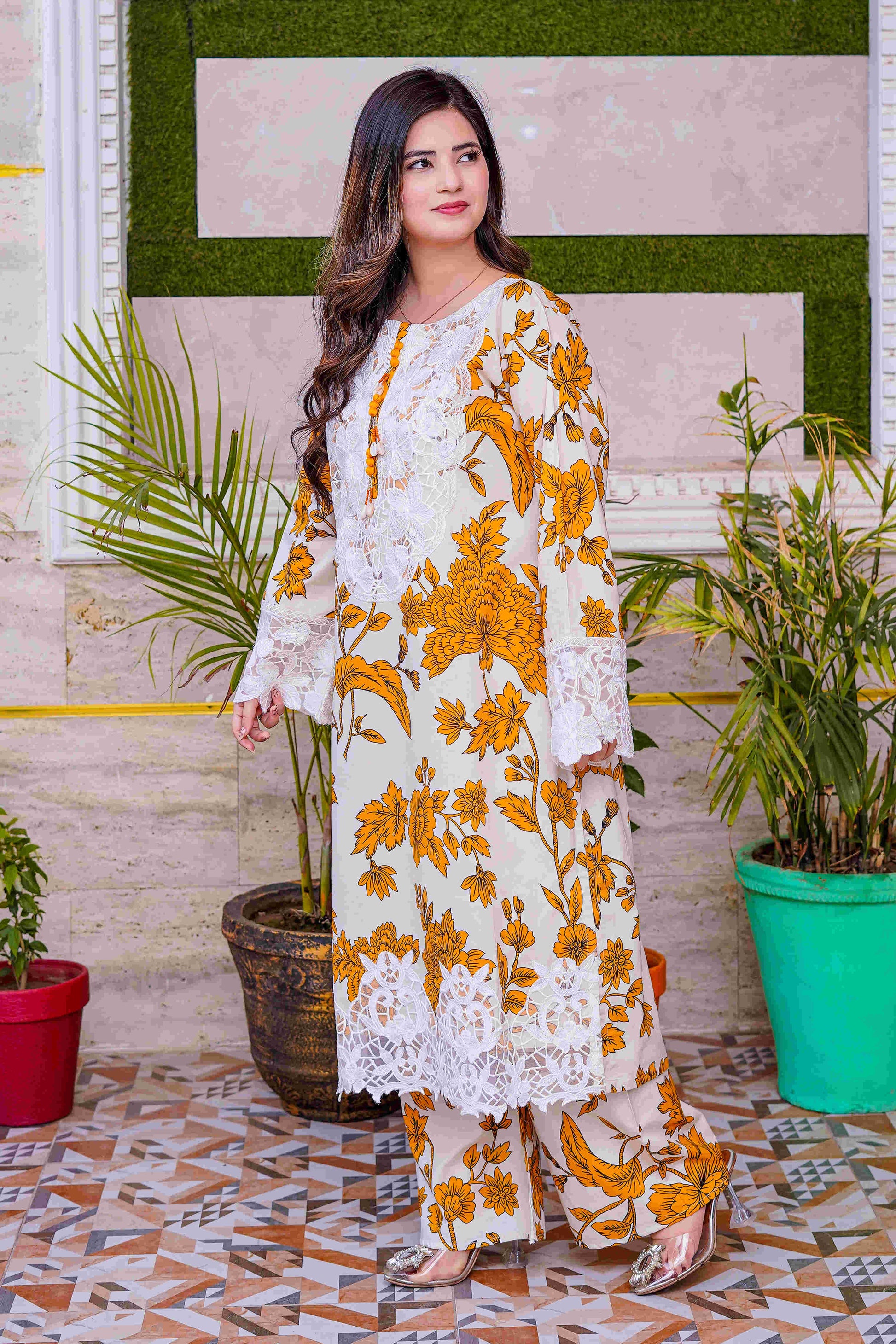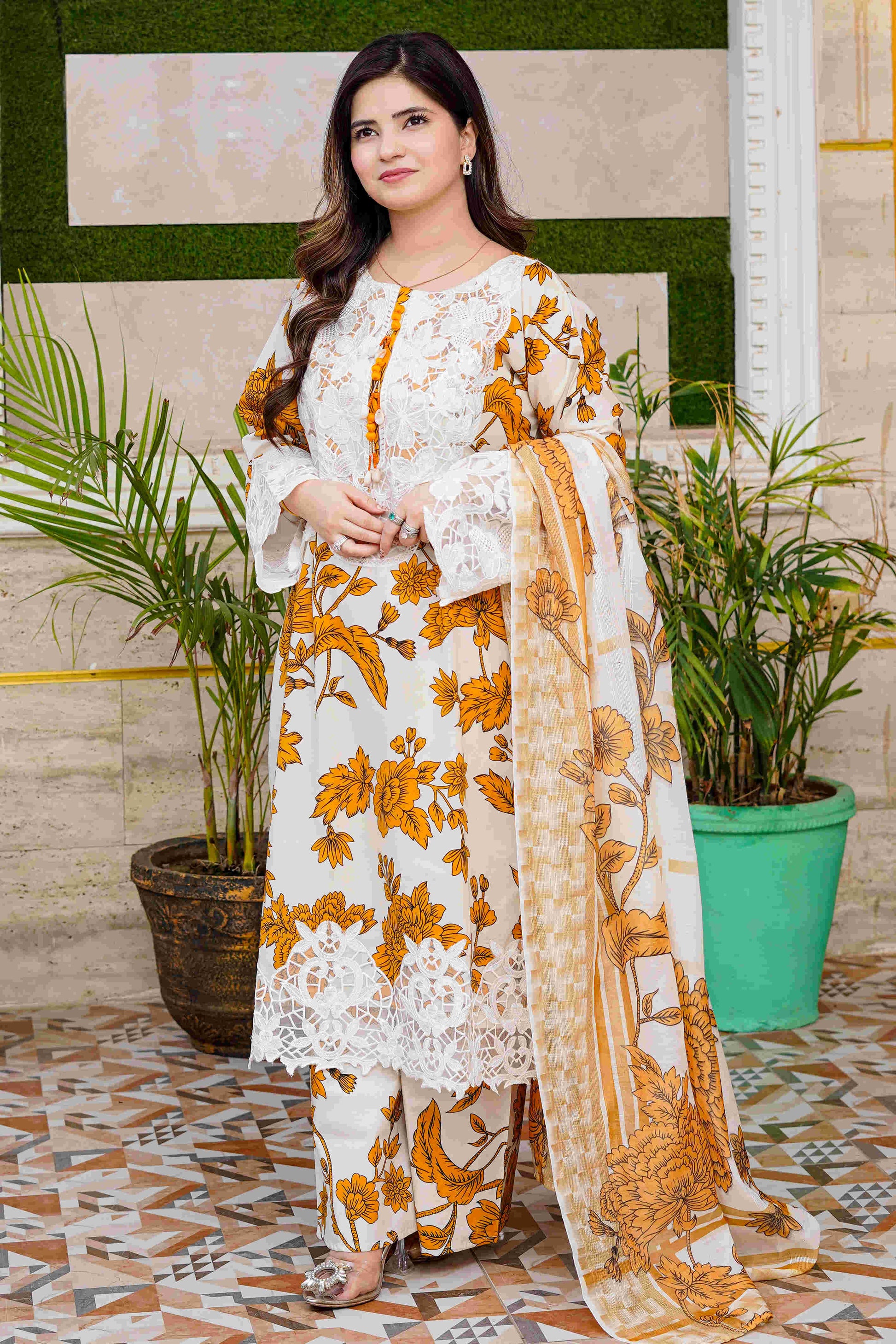 Our fabric is crafted from 100% pure cotton lawn, celebrated for its lightweight, breathable, and luxuriously soft nature. With its fine, smooth texture and graceful drape, this fabric offers effortless elegance while ensuring all-day comfort. Designed to keep you cool and fresh in warm weather, it blends timeless sophistication with natural ease, making it a perfect choice for both everyday wear and special occasions.