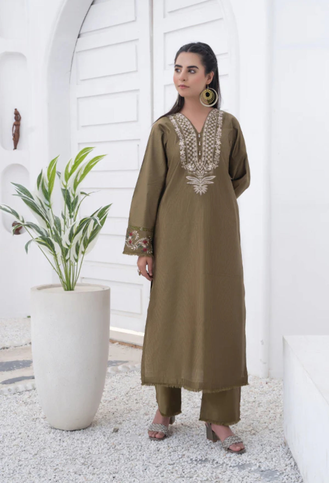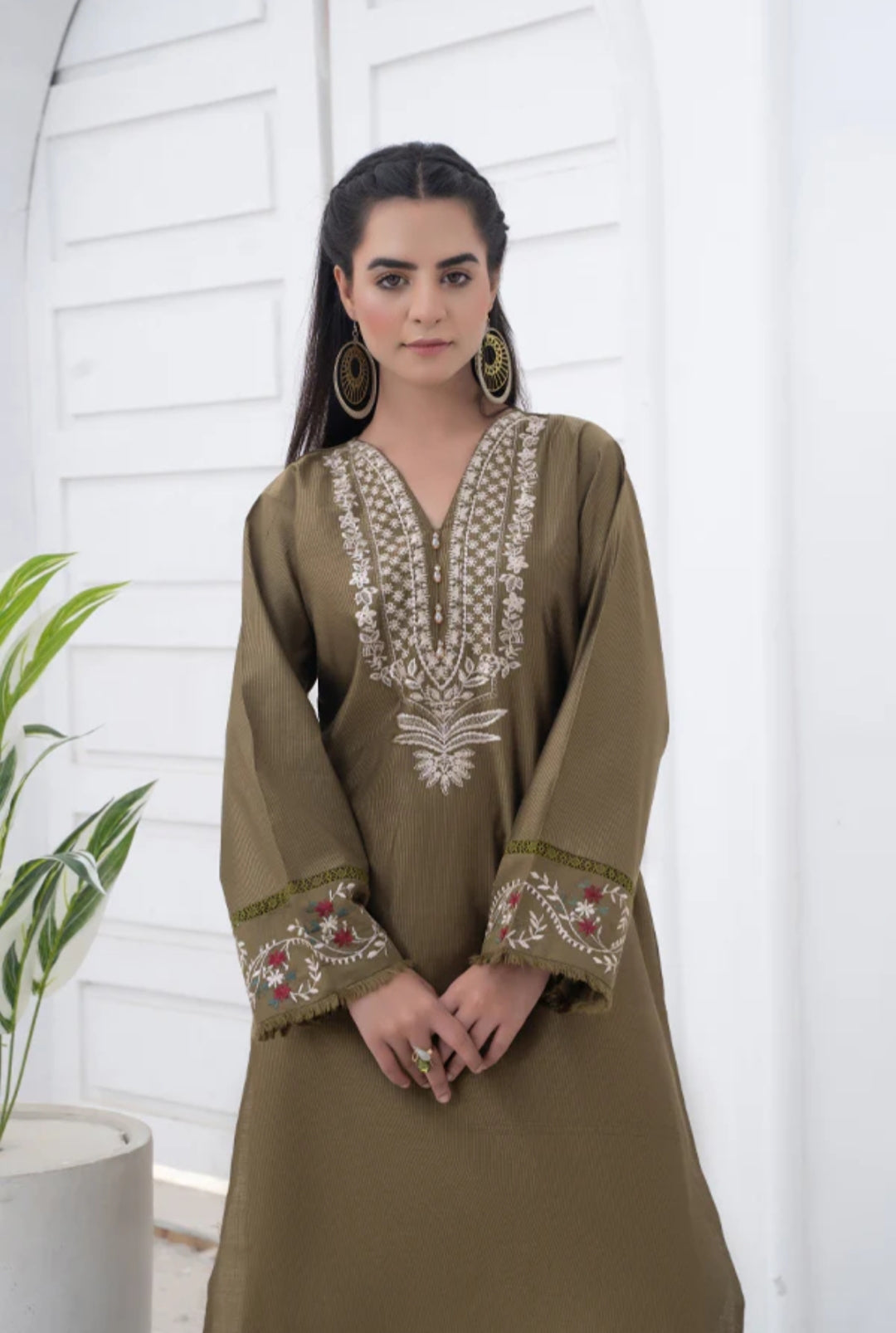 Refresh your winter wardrobe with Olive Bloom, an exquisitely embroidered shirt crafted from premium Khaddi net. Designed to offer comfort during the early winter chill, Olive Bloomcaptures the essence of traditional Pakistani artistry blended with modern sophistication. The earthy olive tones and intricate embroidery bring graceful warmth to your look, while the soft, breathable texture ensures ease through changing seasons.