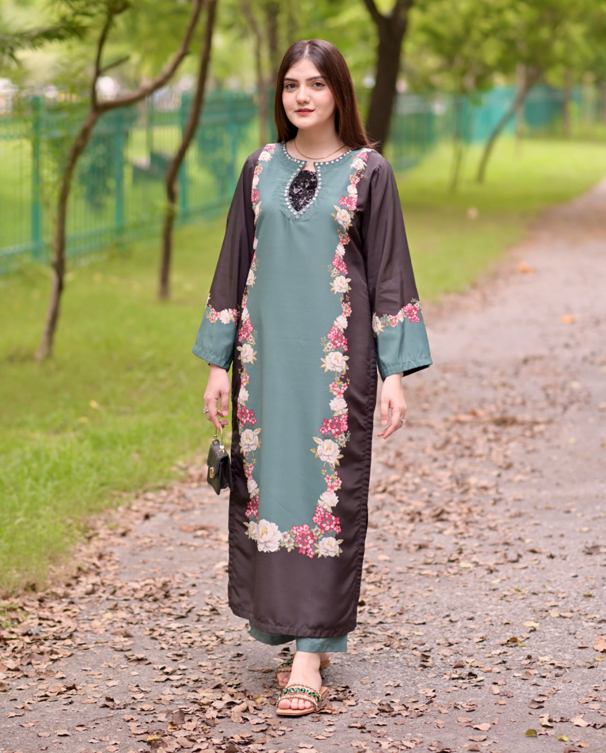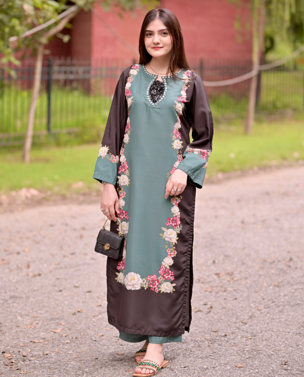 Refresh your winter wardrobe with our Serenity Co-ord Set, a beautifully crafted outfit made from warm blended fabric. Designed to bring comfort during the early winter chill, this set blends traditional Pakistani charm with modern sophistication. The soft pastel adds a graceful warmth to your look, while the versatile fabric keeps you cozy in cooler months yet breathable enough to carry effortlessly into the seasons ahead.