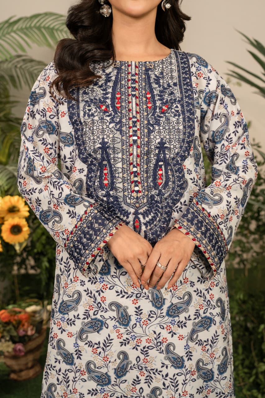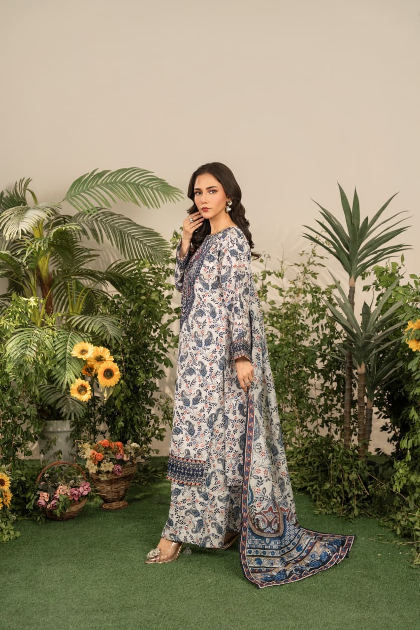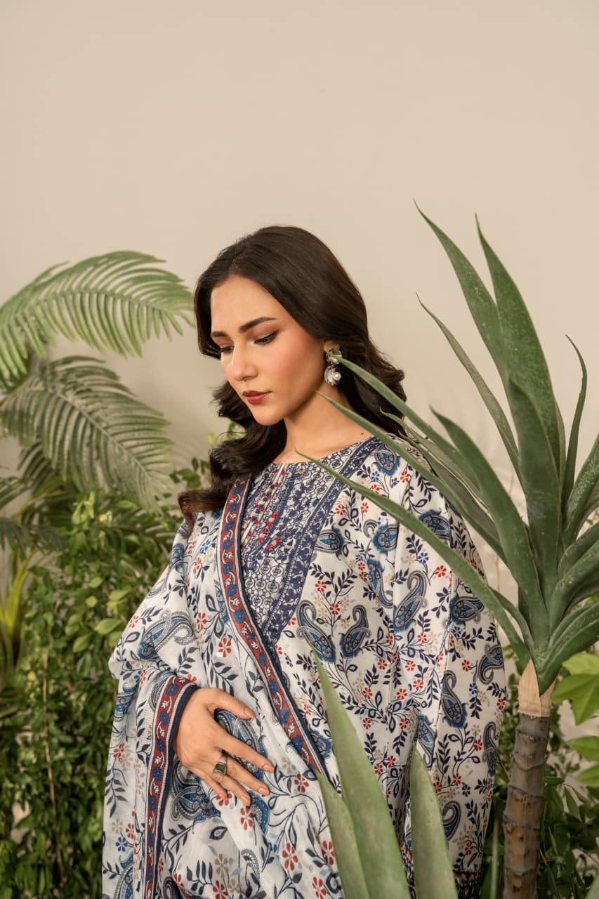 Refresh your winter wardrobe with Serena, an exquisitely embroidered shirt crafted from premium Khaddar. Designed to offer comfort during the early winter chill, Serena captures the essence of traditional Pakistani artistry blended with modern sophistication. The earthy blue tones and intricate embroidery bring graceful warmth to your look, while the soft, breathable texture ensures ease through changing seasons.