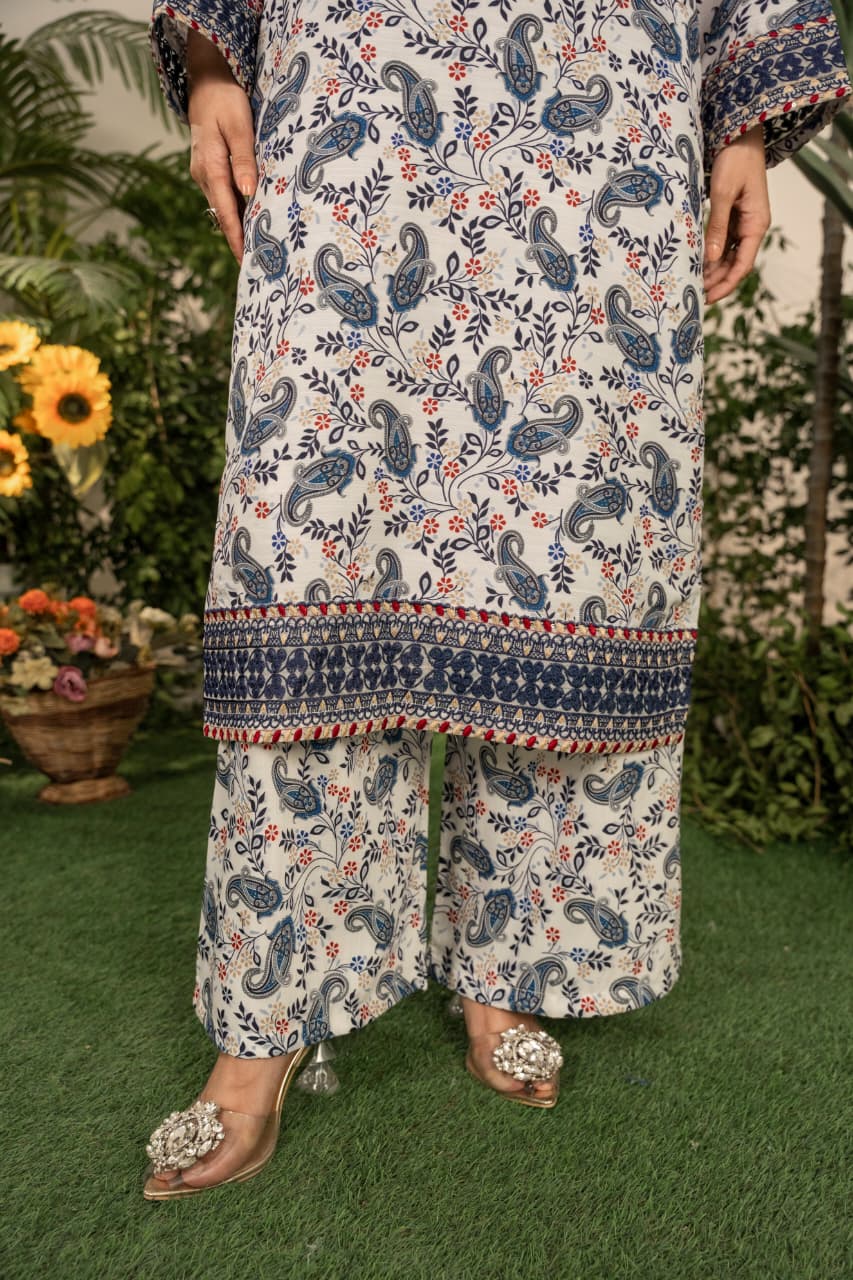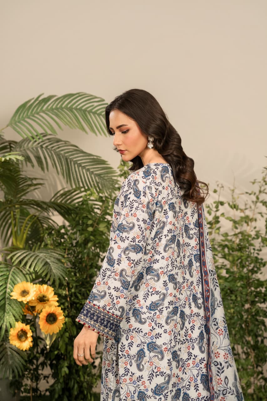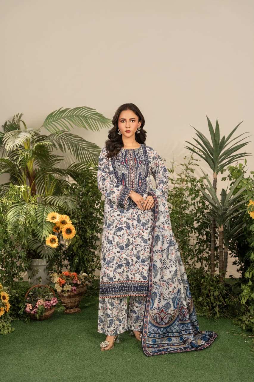 Refresh your winter wardrobe with Serena, an exquisitely embroidered shirt crafted from premium Khaddar. Designed to offer comfort during the early winter chill, Serena captures the essence of traditional Pakistani artistry blended with modern sophistication. The earthy blue tones and intricate embroidery bring graceful warmth to your look, while the soft, breathable texture ensures ease through changing seasons.